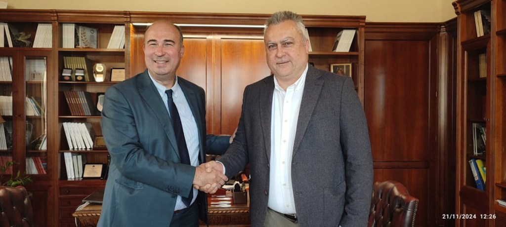 Σε μία συνάντηση που σηματοδοτεί τη βούληση για συνεργασία και ανάπτυξη, ο Αντιπεριφερειάρχης Κορινθίας, κ. Τάσος Γκιολής, υποδέχθηκε σήμερα στα γραφεία της Περιφερειακής Ενότητας τον υποψήφιο πρόεδρο του Επιμελητηρίου Κορινθίας, με τον συνδυασμό «ΚΟΡΙΝΘΙΑΚΟ ΕΠΙΧΕΙΡΕΙΝ», κ. Θάνο Δούρο.