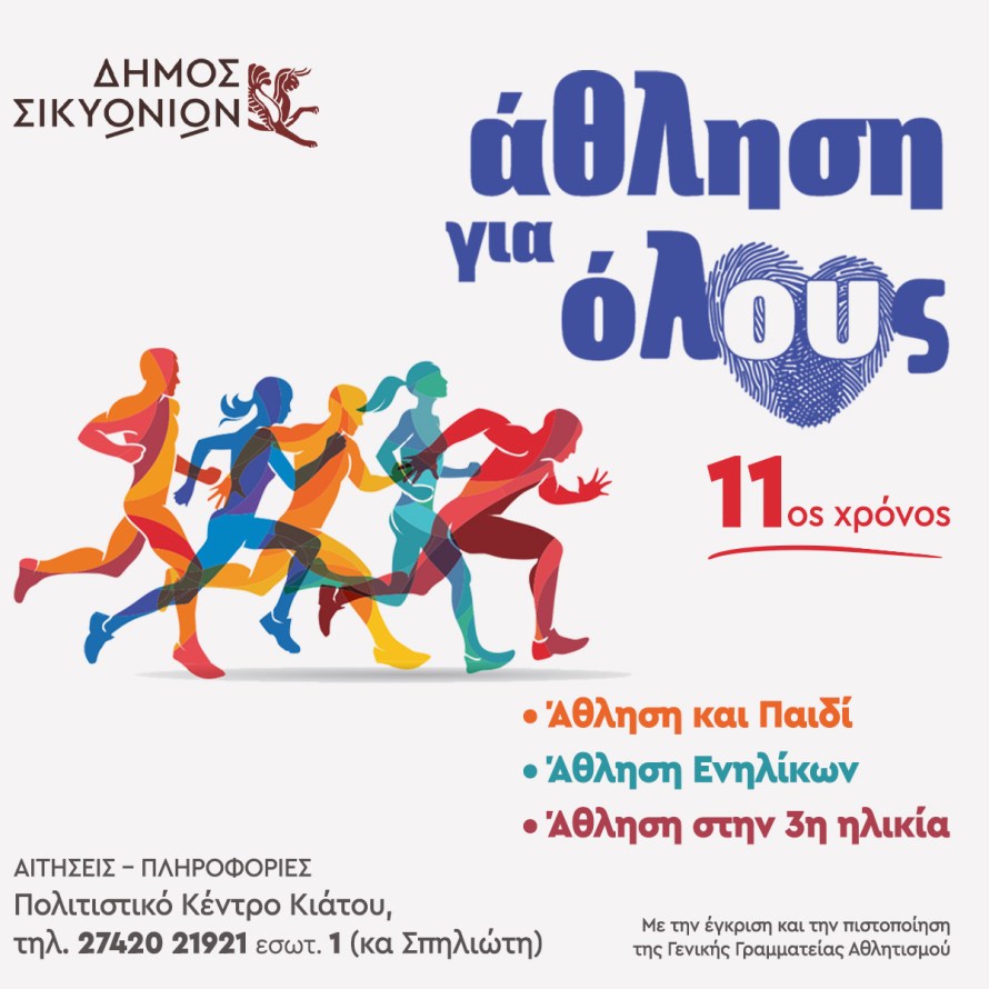 Για ακόμη μία χρονιά, ο Δήμος Σικυωνίων εξασφάλισε την έγκριση πρόσληψης Πτυχιούχου Φυσικής Αγωγής για την υλοποίηση του προγράμματος Άθληση για Όλους, με απόφαση του Υπουργείου Παιδείας, Θρησκευμάτων και Αθλητισμού και του Υπουργείου Εσωτερικών.