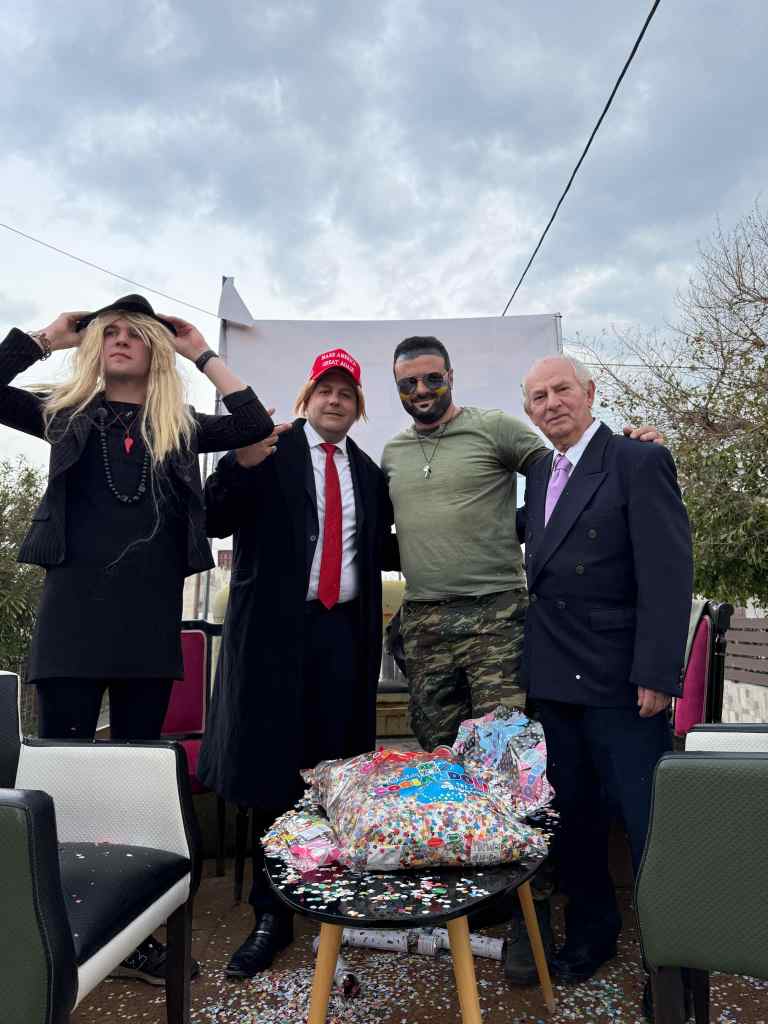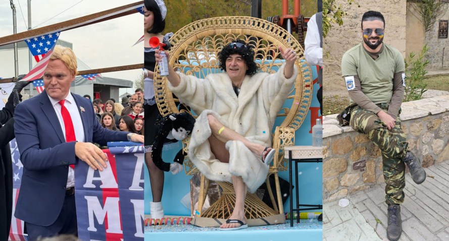 Στον αντίποδα, ο Σπύρος Καραβάς, επικεφαλής της αντιπολίτευσης στον Δήμο Ξυλοκάστρου-Ευρωστίνης, εμφανίστηκε ως Βολοντίμιρ Ζελένσκυ. Με το χαρακτηριστικό χακί φούτερ, γενειάδα και σοβαρό ύφος, έπαιξε τον ρόλο του προέδρου της Ουκρανίας, ενώ κάποιοι τον πείραζαν και τον ρωτούσαν αν είναι έτοιμος για διαπραγματεύσεις με τις ΗΠΑ για τις σπάνιες γαίες!