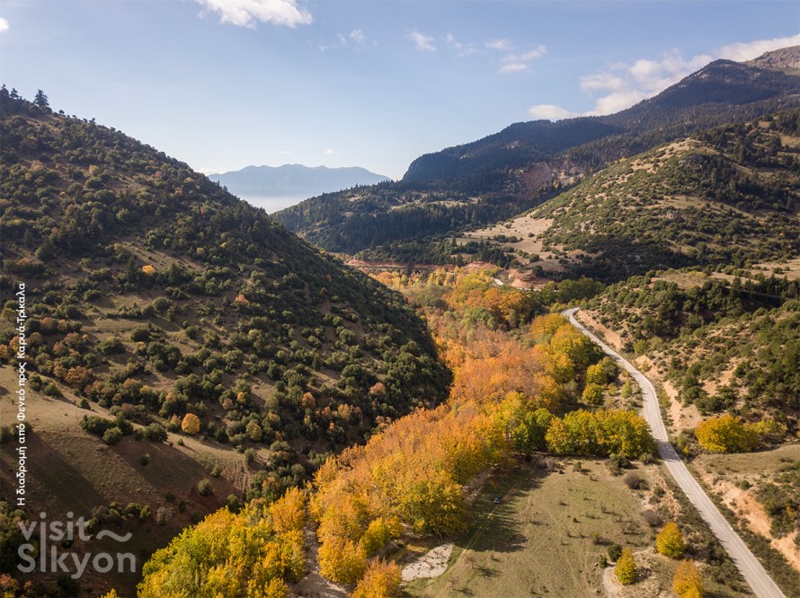 Η ΔΙΑΔΡΟΜΗ: Κιάτο (εκκίνηση Πλατεία Ελευθερίας) – Βέλο – Ταρσινά – Στιμάγκα – Κούτσι – Πετρί – Γαλατάς – Πλατάνι – Σκοτεινή – Κανδήλα – Λεβίδι – Βλαχέρνα – Χωτούσσα – Λίμνη – Διακόπι – Μάτι – Αχλαδέα – Αμυγδαλιά – Πανόραμα – Αρχαία Φενεός – Λίμνη Δόξα – Συβίστα – Στενό – Φαράγγι Όλβιου – Καρυά – Μεσαία Τρίκαλα – Κάτω Τρίκαλα – Ρίζα – Ξυλόκαστρο – Συκιά – Μελίσσι – Διμηνιό – Κάτω Διμηνιό – Κιάτο (τερματισμός στην Πλατεία Ελευθερίας).