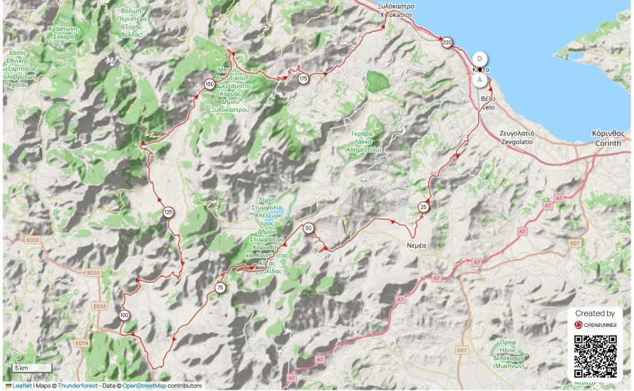 Από τα παράλια του Κιάτου και τα αμπελοτόπια της Νεμέας, μέχρι τα ημιορεινά της Τρίπολης και τα φαράγγια της Καρυάς, οι συμμετέχοντες θα περάσουν από το φαράγγι του Όλβιου ποταμού, το δάσος της Καρυάς, την ειδυλλιακή Λίμνη Δόξα και γραφικά χωριά όπως η Αρχαία Φενεός και τα Τρίκαλα Κορινθίας.