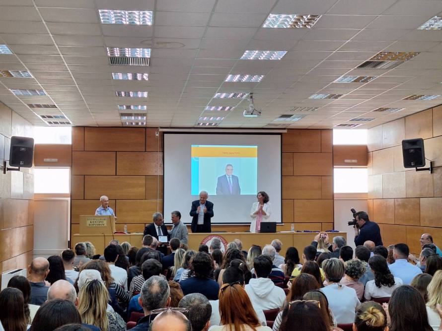 Ιδιαίτερη στιγμή της εκδήλωσης αποτέλεσε η παρουσία του Αντιπροέδρου της ΕΜΕ κ. Τάκη Δρούτσα, ο οποίος ήταν και ο κεντρικός ομιλητής της ημέρας, εμπνέοντας τους παρευρισκόμενους με λόγια για τη σημασία των μαθηματικών στην παιδεία και την κοινωνία.
