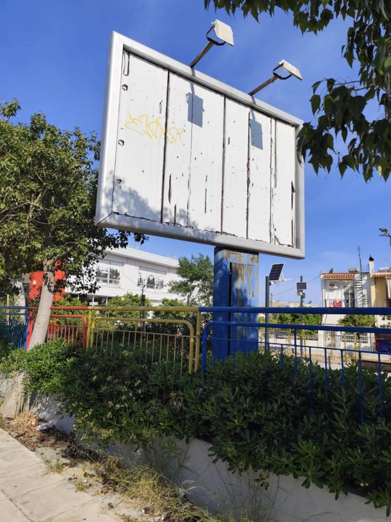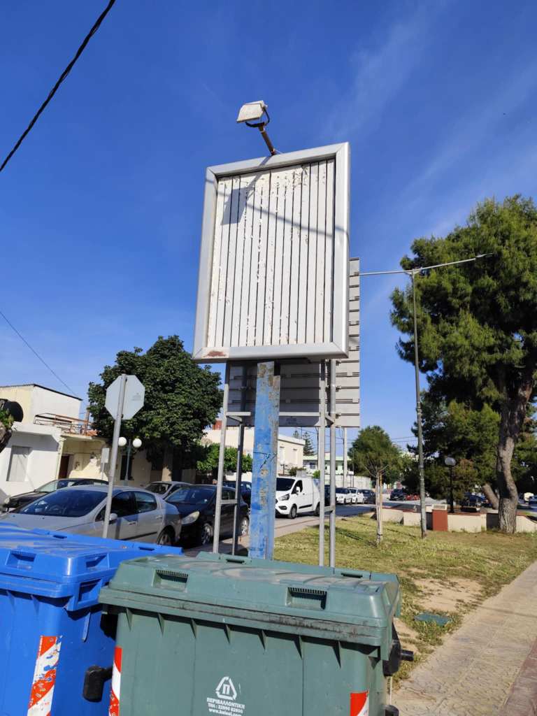 Η δημοσιότητα που πήρε η μισοδιαλυμένη πινακίδα στο πάρκο τσέπης στις Εργατικές Κατοικίες ανέδειξε την ανάγκη απομάκρυνσης παλιών διαφημιστικών πινακίδων. Και –ναι– ο Δήμος ξεκίνησε να ανταποκρίνεται οργανωμένα!