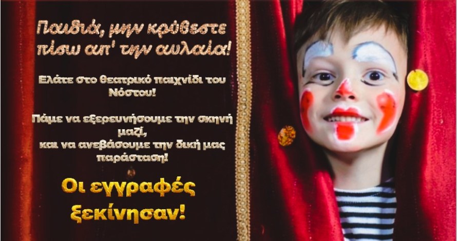 Η Παιδική και η Εφηβική Θεατρική Σκηνή του Συλλόγου «ΝΟΣΤΟΣ» καλούν τα παιδιά να ανακαλύψουν τη μαγεία της σκηνής