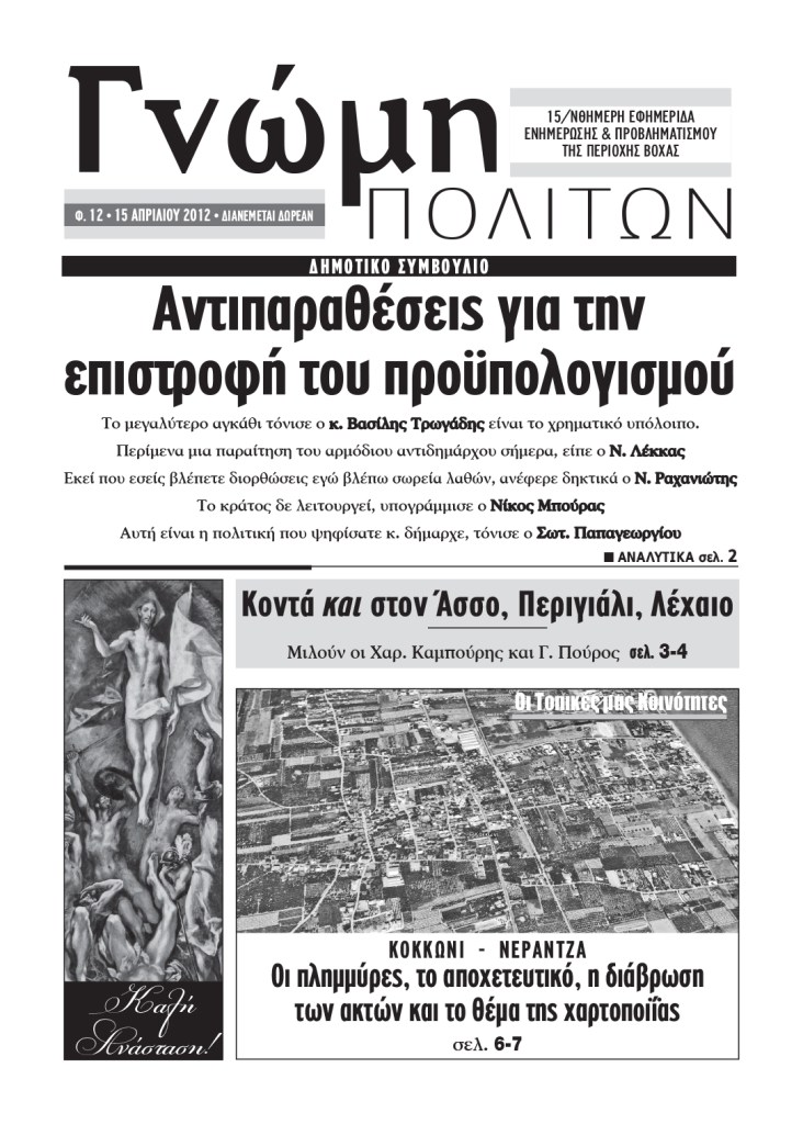 2012 Γνώμη Πολιτών, φ. 12, 15 Απριλίου 2012 By gnomipoliton on 16/04/2012 • ( Σχολιάστε ) Κοινοποιήστε: Μοιραστείτε στο X(Ανοίγει σε νέο παράθυρο) Χ Mοιραστείτε στο Facebook(Ανοίγει σε νέο παράθυρο) Facebook Μου αρέσει! Φόρτωση... Σχετικά Κατηγορίες:2012, ΠΑΛΙΑ ΤΕΥΧΗ Tagged as: ΔΗΜΟΣ ΒΕΛΟΥ-ΒΟΧΑΣ