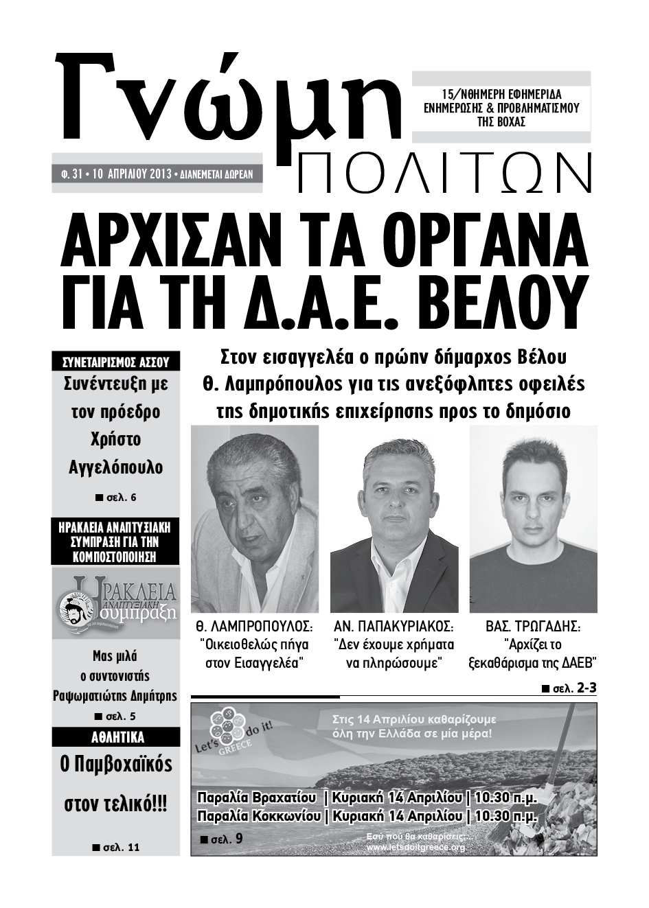 Στον Εισαγγελέα ο πρώην δήμαρχος Βέλου Θ. Λαμπρόπουλος για τις ανεξόφλητες οφειλές της δημοτικής επιχείρησης στο δημόσιο.