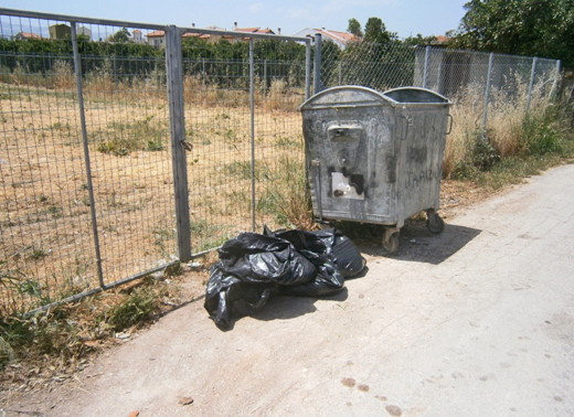 Μια – δυο ώρες αφού καθαρίστηκε το συγκεκριμένο σημείο της φωτογραφίας ( δίπλα στο Δημοτικό σχολείο Βραχατίου) και με άδειο τον κάδο, πετάχτηκαν σακούλες, όχι μέσα στον ήδη άδειο κάδο, αλλά δίπλα!!!