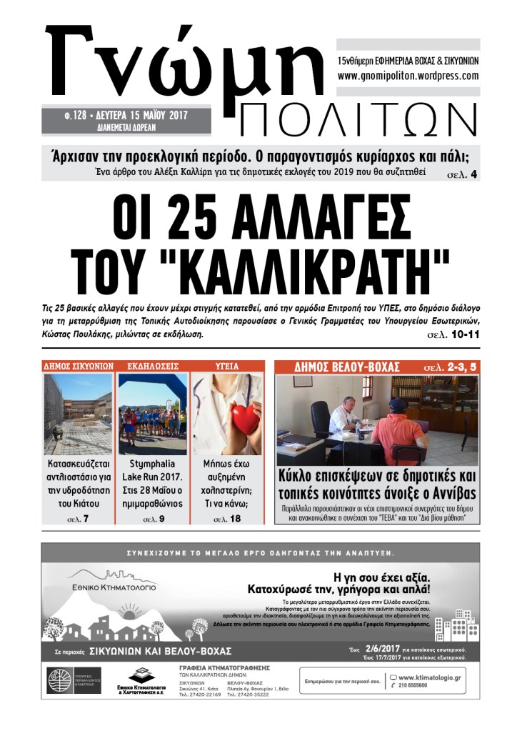 2017 Γνώμη Πολιτών, φ. 128, Δευτέρα 15 Μαΐου 2017 By gnomipoliton on 16/05/2017 • ( Σχολιάστε ) Κοινοποιήστε: Κάνε κλικ για να μοιραστείς στο X(Ανοίγει σε νέο παράθυρο) Χ Πατήστε για κοινοποίηση στο Facebook(Ανοίγει σε νέο παράθυρο) Facebook Μου αρέσει! Φόρτωση... Σχετικά Κατηγορίες:2017, ΠΑΛΙΑ ΤΕΥΧΗ