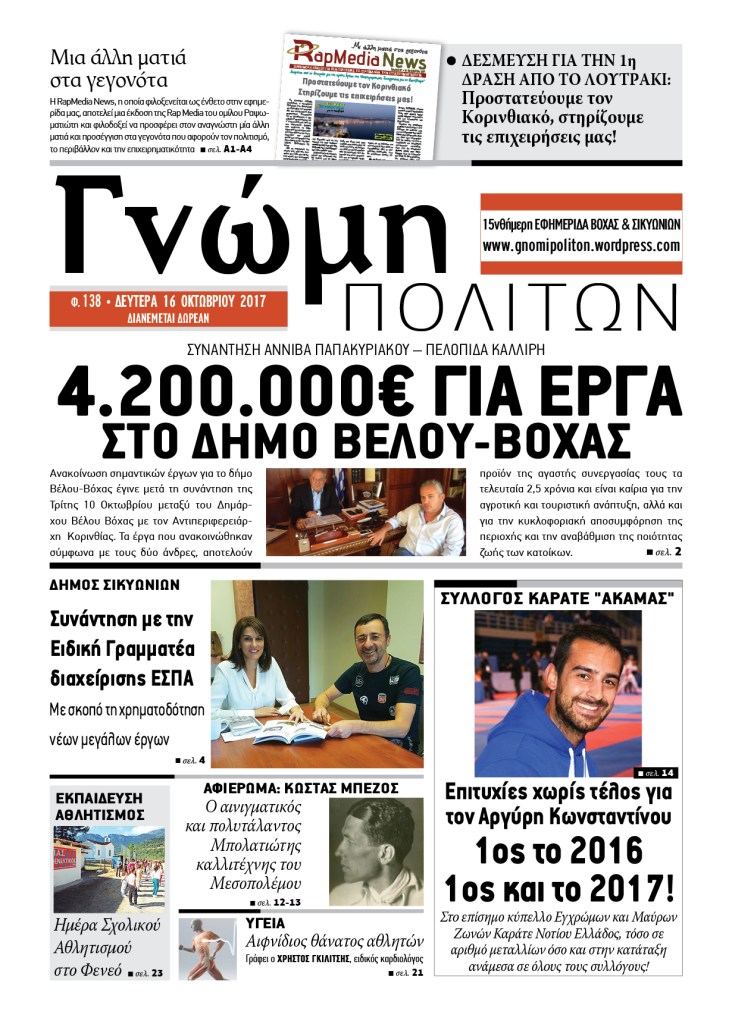 2017 Γνώμη Πολιτών, φ. 138, Δευτέρα 16 Οκτωβρίου 2017 By gnomipoliton on 20/10/2017 • ( Σχολιάστε ) Κοινοποιήστε: Κάνε κλικ για να μοιραστείς στο X(Ανοίγει σε νέο παράθυρο) Χ Πατήστε για κοινοποίηση στο Facebook(Ανοίγει σε νέο παράθυρο) Facebook Μου αρέσει! Φόρτωση... Σχετικά Κατηγορίες:2017, ΠΑΛΙΑ ΤΕΥΧΗ