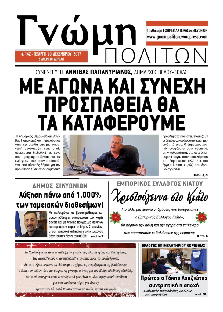 2017 Γνώμη Πολιτών, φ. 142, Τετάρτη 20 Δεκεμβρίου 2017 By gnomipoliton on 21/12/2017 • ( Σχολιάστε ) Κοινοποιήστε: Κάνε κλικ για να μοιραστείς στο X(Ανοίγει σε νέο παράθυρο) Χ Πατήστε για κοινοποίηση στο Facebook(Ανοίγει σε νέο παράθυρο) Facebook Μου αρέσει! Φόρτωση... Σχετικά Κατηγορίες:2017, ΠΑΛΙΑ ΤΕΥΧΗ