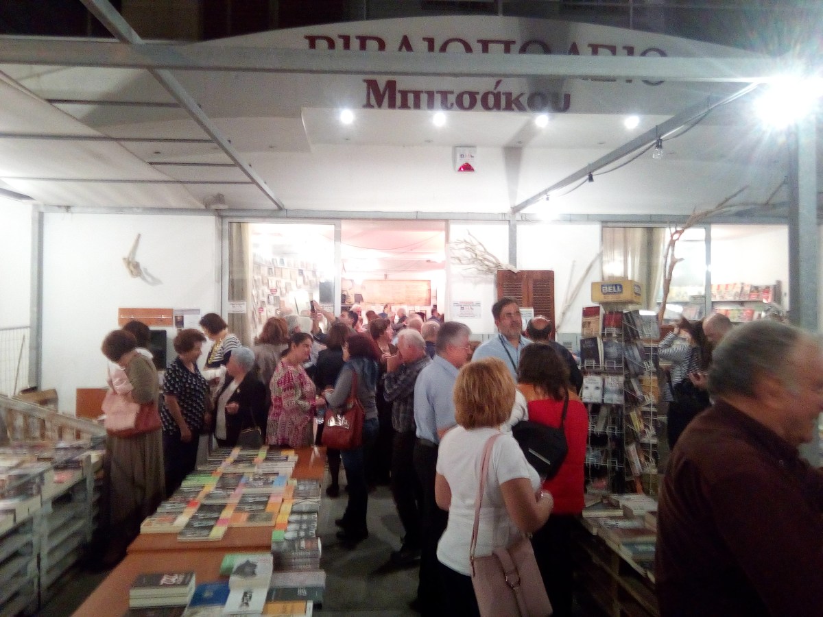Κατάμεστο το βιβλιοπωλείο Μπιτσάκου, μέσα και έξω από κόσμο που ήρθε να τιμήσει τη μνήμη του Ντίνου Βλαχογιάννη.