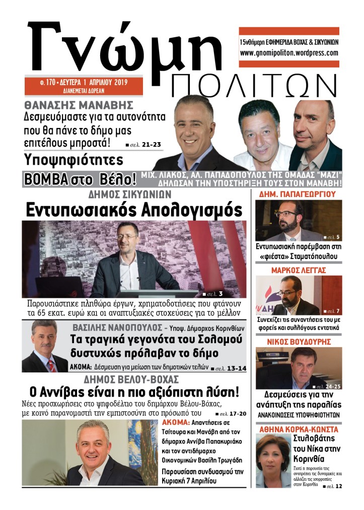 2019 Γνώμη Πολιτών, φ. 170, Δευτέρα 1 Απριλίου 2019 By gnomipoliton on 05/04/2019 • ( Σχολιάστε ) Κοινοποιήστε: Κάνε κλικ για να μοιραστείς στο X(Ανοίγει σε νέο παράθυρο) Χ Πατήστε για κοινοποίηση στο Facebook(Ανοίγει σε νέο παράθυρο) Facebook Μου αρέσει! Φόρτωση... Σχετικά Κατηγορίες:2019, ΠΑΛΙΑ ΤΕΥΧΗ