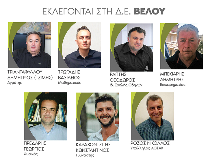Επειδή οι ερωτήσεις προς την εφημερίδα μας πέφτουν βροχή, σας παρουσιάζουμε αναλυτικά τις έδρες και τα πρόσωπα που εκλέγονται στο νέο δημοτικό συμβούλιο του δήμου Βέλου-Βόχας. Ξεκινάμε από τον πλειοψηφήσαντα την πρώτη Κυριακή συνδυασμό: