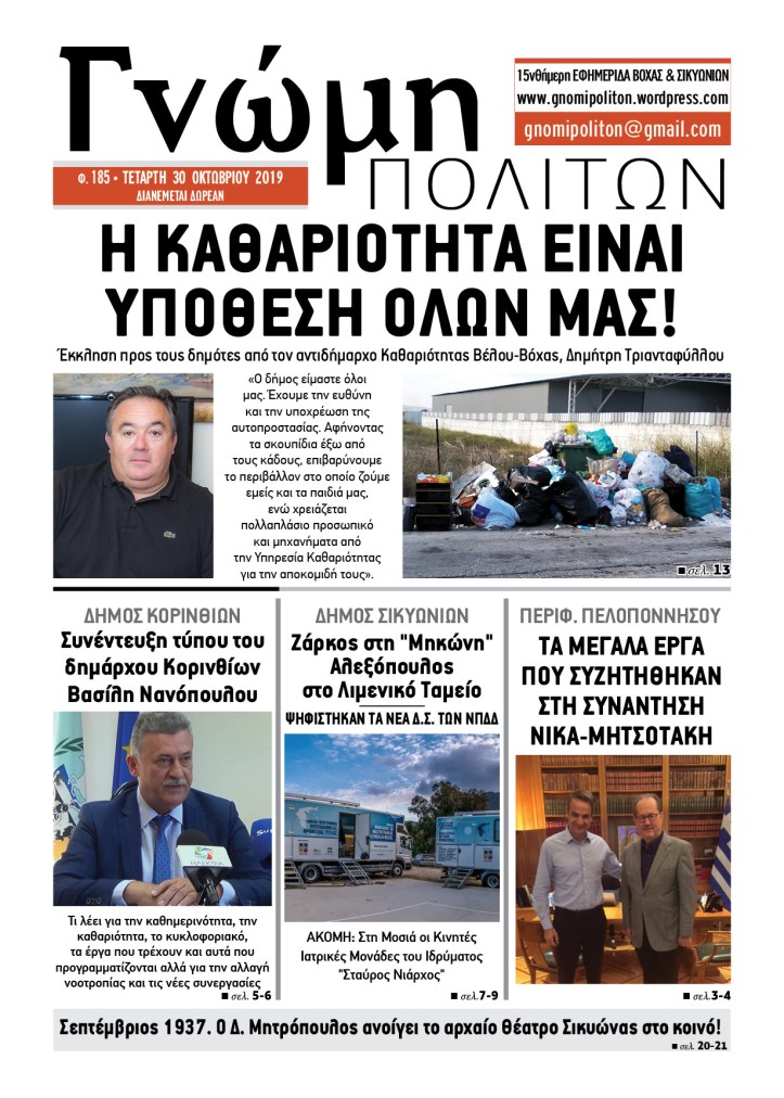 2019 Γνώμη Πολιτών, φ. 185, Τετάρτη 30 Οκτωβρίου 2019 By gnomipoliton on 03/11/2019 • ( Σχολιάστε ) Κοινοποιήστε: Κάνε κλικ για να μοιραστείς στο X(Ανοίγει σε νέο παράθυρο) Χ Πατήστε για κοινοποίηση στο Facebook(Ανοίγει σε νέο παράθυρο) Facebook Μου αρέσει! Φόρτωση... Σχετικά Κατηγορίες:2019, ΠΑΛΙΑ ΤΕΥΧΗ