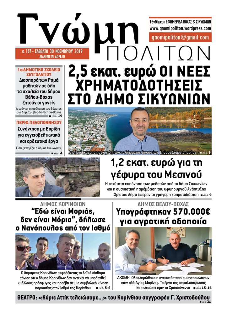 2019 Γνώμη Πολιτών, φ. 187, Σάββατο 30 Νοεμβρίου 2019 By gnomipoliton on 04/12/2019 • ( Σχολιάστε ) Κοινοποιήστε: Μοιραστείτε στο X(Ανοίγει σε νέο παράθυρο) Χ Mοιραστείτε στο Facebook(Ανοίγει σε νέο παράθυρο) Facebook Μου αρέσει! Φόρτωση... Σχετικά Κατηγορίες:2019, ΠΑΛΙΑ ΤΕΥΧΗ