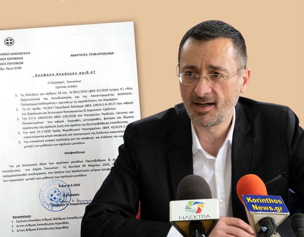- Αναβολή όλων των προγραμματισμένων εκδηλώσεων του δήμου Σικυωνίων που προγραμματίζονται να πραγματοποιηθούν σε δημοτικούς χώρους. Επιπλέον, καλεί όλους τους συλλόγους και πολιτιστικούς φορείς να αναβάλουν και αυτοί τις όποιες εκδηλώσεις έχουν προγραμματίσει σε ιδιωτικούς χώρους. Ο περιορισμός ισχύει έως 15 Μαρτίου με επαναξιολόγηση της κατάστασης και λήψη νεότερης απόφασης.