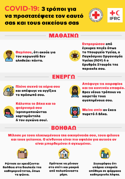 Με ένα χαρακτηριστικό γράφημα ο Ελληνικός Ερυθρός Σταυρός τμ. Κορίνθου συνιστά στους Κορίνθιους ΨΥΧΡΑΙΜΙΑ ο πανικός δεν βοήθησε ποτέ, ΕΝΗΜΕΡΩΣΗ μόνο από επίσημους φορείς και όχι από φήμες, ΠΡΟΣΤΑΤΕΥΟΥΜΕ τον εαυτό μας και τους άλλους. ΥΠΟΜΟΝΗ θα περάσει!