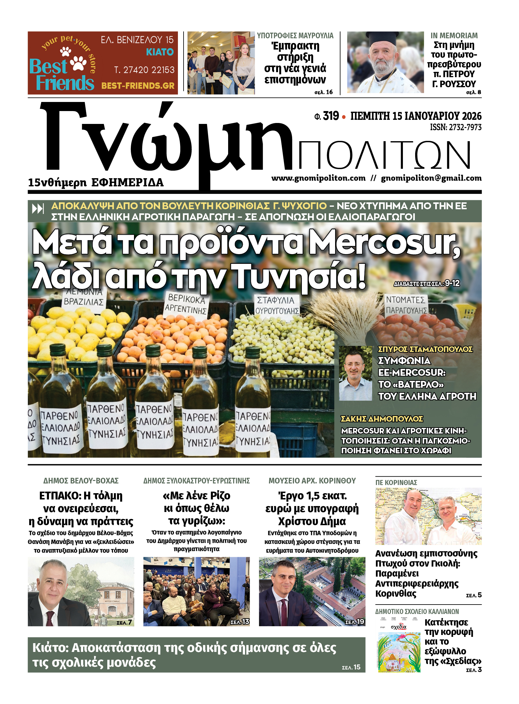 Η εφημερίδα «Ακρόπολις» αναφέρει ότι ρώτησε κατά σειρά τον δήμαρχο Ευρωστίνης κ. Μεντζελόπουλο αν είναι συγγενής του βουλευτή, για να πάρει καταφατική απάντηση και τον δήμαρχο Σικυώνος κ. Φραντζή για την παρακράτηση, το μέτρο που εφαρμόζεται για την υποστήριξη των σταφιδοπαραγωγών.