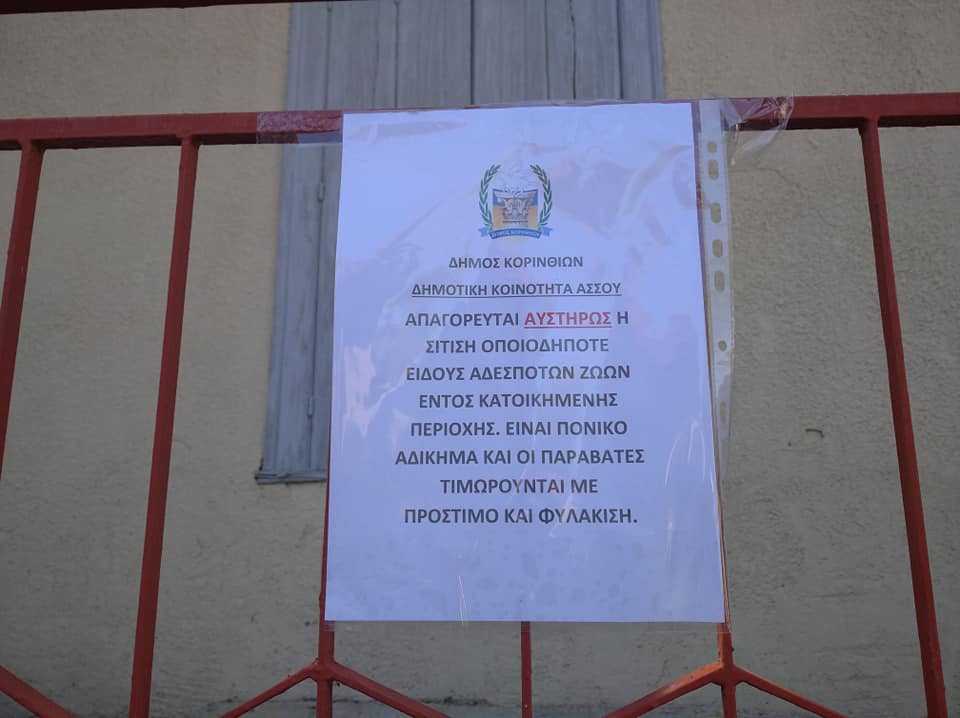 Μια περίεργη υπόθεση έλαβε χώρα από χθες το απόγευμα Παρασκευή 12 Ιουνίου. Άγνωστοι χρησιμοποιώντας το λογότυπο του δήμου Κορινθίων τοιχοκόλλησαν σε κεντρικά σημεία της Κοινότητας Άσσου, ανακοίνωση, η οποία ανέφερε, ότι είναι παράνομο το τάισμα των αδέσποτων. Οι ψευδο-ανακοινώσεις τοποθετήθηκαν τοιχοκολλήθηκαν στο κοινοτικό γραφείο και στο μαγαζί στα Πλατάνια Άσσου.