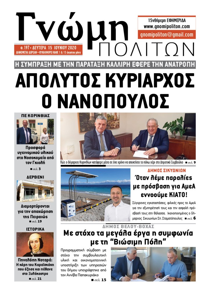 2020 Γνώμη Πολιτών, φ. 197, 15 Ιουνίου 2020 By gnomipoliton on 16/06/2020 • ( Σχολιάστε ) Κοινοποιήστε: Κάνε κλικ για να μοιραστείς στο X(Ανοίγει σε νέο παράθυρο) Χ Πατήστε για κοινοποίηση στο Facebook(Ανοίγει σε νέο παράθυρο) Facebook Μου αρέσει! Φόρτωση... Σχετικά Κατηγορίες:2020, ΠΑΛΙΑ ΤΕΥΧΗ