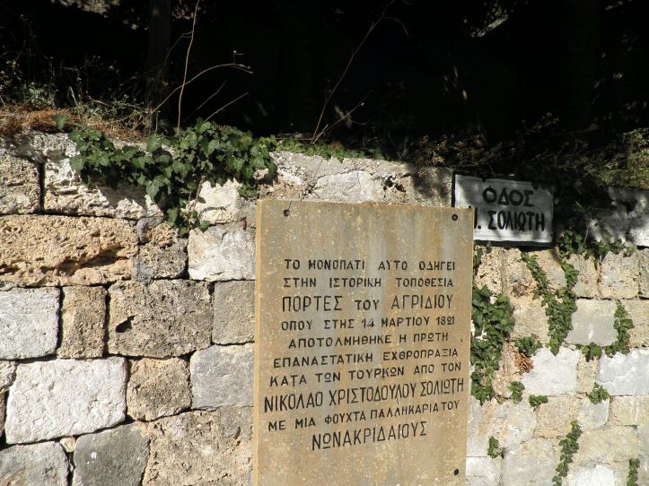 Στο Αγρίδι, το πρώτο από τα Κλουκινοχώρια, όπως ονομάζονται τα χωριά της περιοχής, θα δείτε το μνημείο που θυμίζει το πρώτο καταγεγραμμένο πολεμικό επεισόδιο της Ελληνικής Επανάστασης, στις 14 Μαρτίου 1821 όταν ο τοπικός οπλαρχηγός Νικόλαος Σολιώτης και τα παλικάρια του σκότωσαν τους Τούρκους φοροεισπράκτορες.