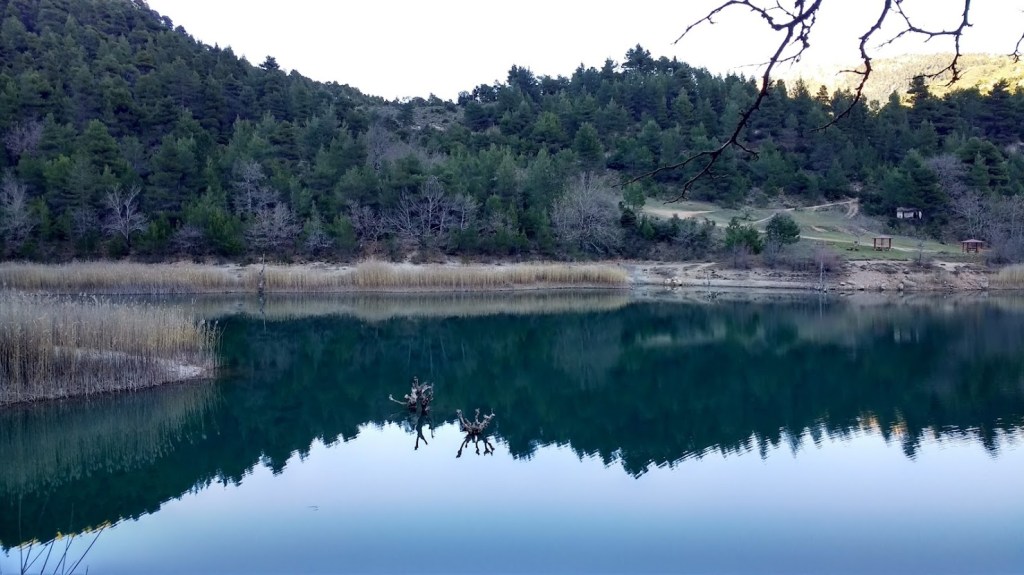 Γύρω από τη λίμνη απλώνεται το πυκνό πευκοδάσος της μαύρης πεύκης και λίγο ψηλότερα ξεπροβάλλουν τα έλατα.