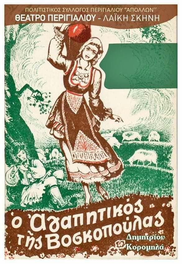 Το θέατρο Περιγιαλίου, σε σκηνοθεσία της απαράμιλλης Πολυξένης Ορκοπούλου-Ξανθάκη, ανέβασε με περισσή υφολογική συνέπεια, τον «Αγαπητικό της βοσκοπούλας», έργο του Δημητρίου Κορομηλά, που πρωτοπαρουσιάστηκε στην Κωνσταντινούπολη και στην Οδησσό το 1891/1892, από τον θίασο «Μένανδρος» των Ταβουλάρηδων. Πρόκειται για ένα κωμειδύλλιο, περιγράφον την αγνή ποιμενική κοινωνία, με παραδοσιακές στολές, γεγονός που ξενίζει τους σύγχρονους αστικής νοοτροπίας θεατές, πλην αναδίδον το πολύτιμο άρωμα της υπαίθρου και βέβαια υπενθυμίζον τις ενδυματολογικές προτιμήσεις των ημετέρων προγόνων.