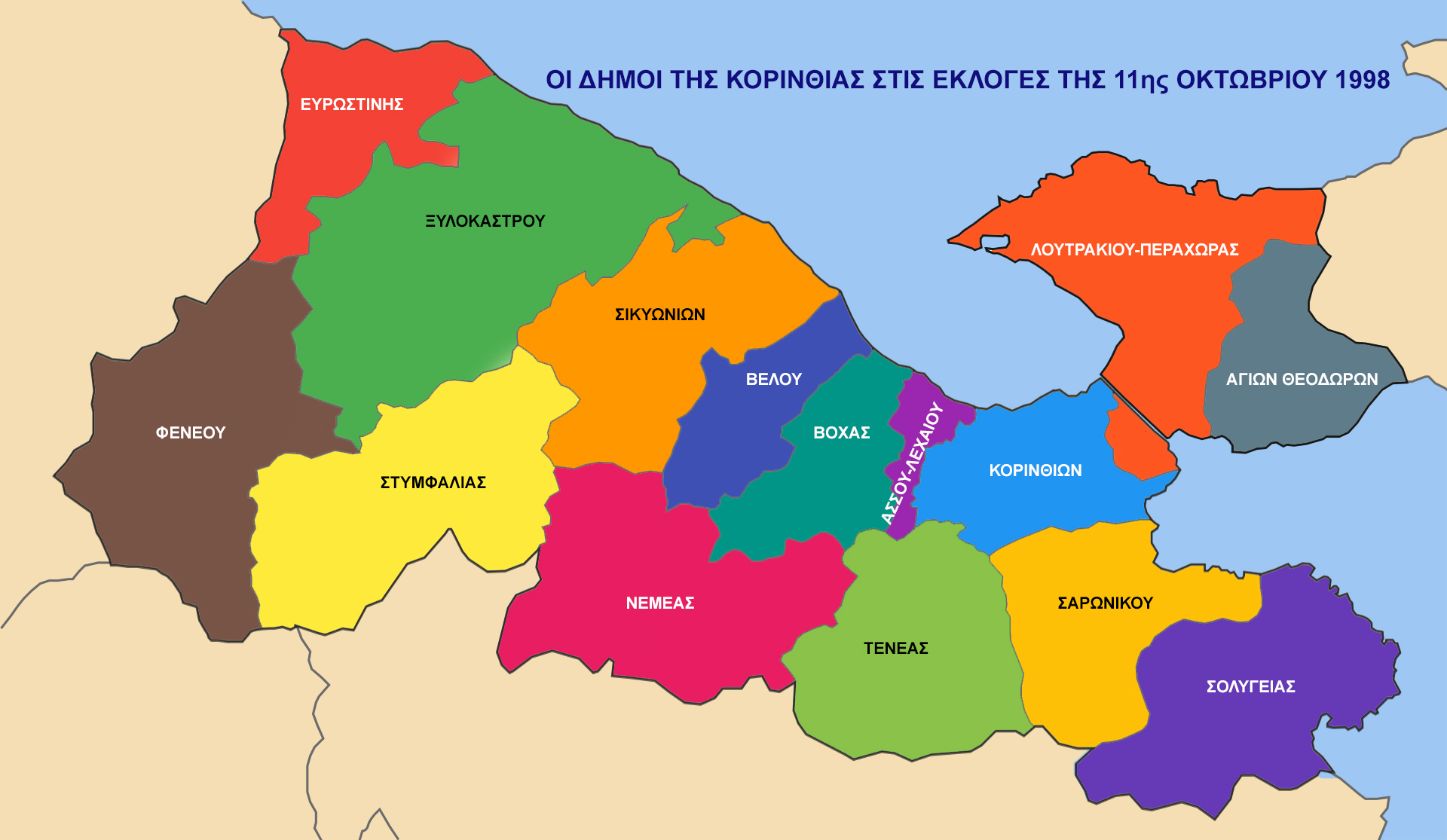 Η Κυριακή 11 Οκτωβρίου 1998 ήταν μια ιστορική μέρα για την Κορινθία. Σε όλα τα μήκη και τα πλάτη του νομού στήθηκαν κάλπες για την ανάδειξη των δημοτικών συμβουλίων των νεοσύστατων δήμων που είχαν προκύψει το προηγούμενο διάστημα με την εφαρμογή του νόμου για τη συνένωση δήμων και Κοινοτήτων «Καποδίστριας».