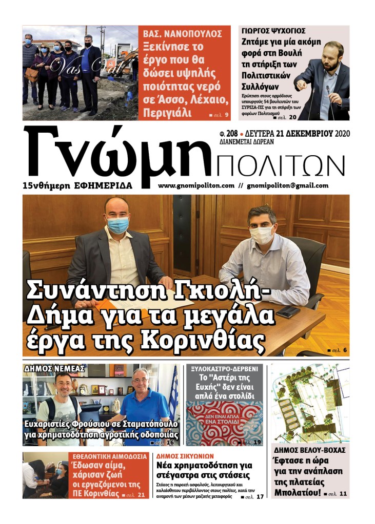 2020 Γνώμη Πολιτών, φ. 208, Δευτέρα 21 Δεκεμβρίου 2020 By gnomipoliton on 24/12/2020 • ( Σχολιάστε ) Κοινοποιήστε: Κάνε κλικ για να μοιραστείς στο X(Ανοίγει σε νέο παράθυρο) Χ Πατήστε για κοινοποίηση στο Facebook(Ανοίγει σε νέο παράθυρο) Facebook Μου αρέσει! Φόρτωση... Σχετικά Κατηγορίες:2020, ΔΗΜΟΤΙΚΑ ΝΕΑ, ΠΑΛΙΑ ΤΕΥΧΗ