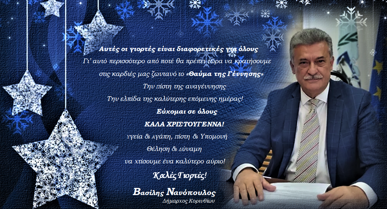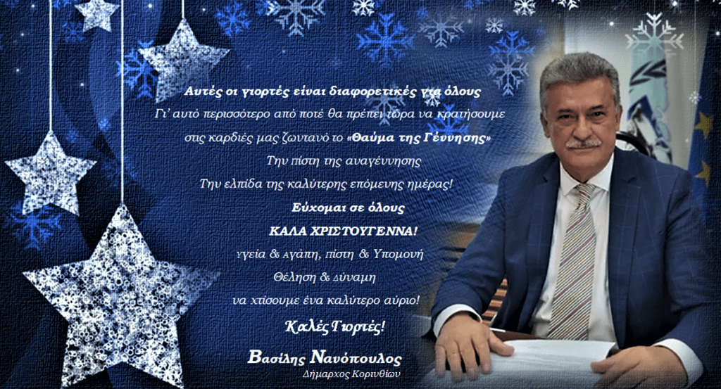 ΔΗΜΟΣ ΚΟΡΙΝΘΙΩΝ Ευχές του δημάρχου Κορινθίων Βασίλη Νανόπουλου By gnomipoliton on 24/12/2020 • ( Σχολιάστε ) Κοινοποιήστε: Κάνε κλικ για να μοιραστείς στο X(Ανοίγει σε νέο παράθυρο) Χ Πατήστε για κοινοποίηση στο Facebook(Ανοίγει σε νέο παράθυρο) Facebook Μου αρέσει! Φόρτωση... Σχετικά Κατηγορίες:ΔΗΜΟΣ ΚΟΡΙΝΘΙΩΝ Tagged as: ΒΑΣΙΛΗΣ ΝΑΝΟΠΟΥΛΟΣ, ΕΥΧΕΣ ΧΡΙΣΤΟΥΓΕΝΝΩΝ