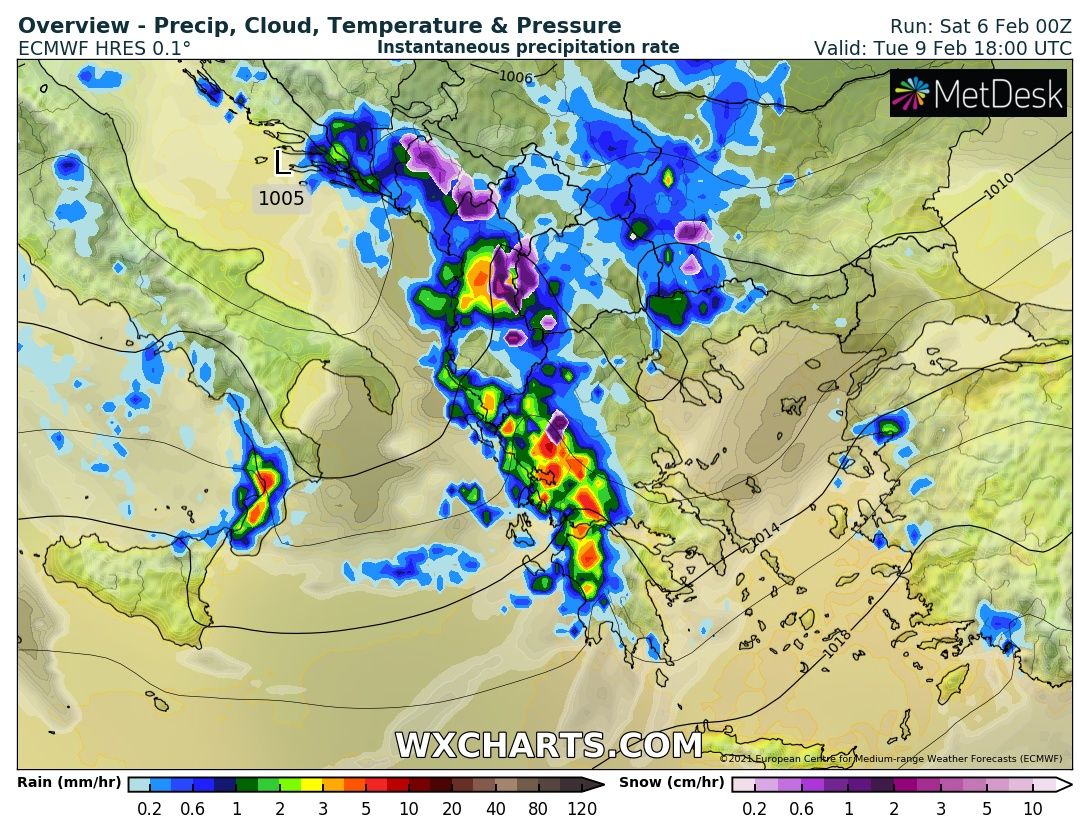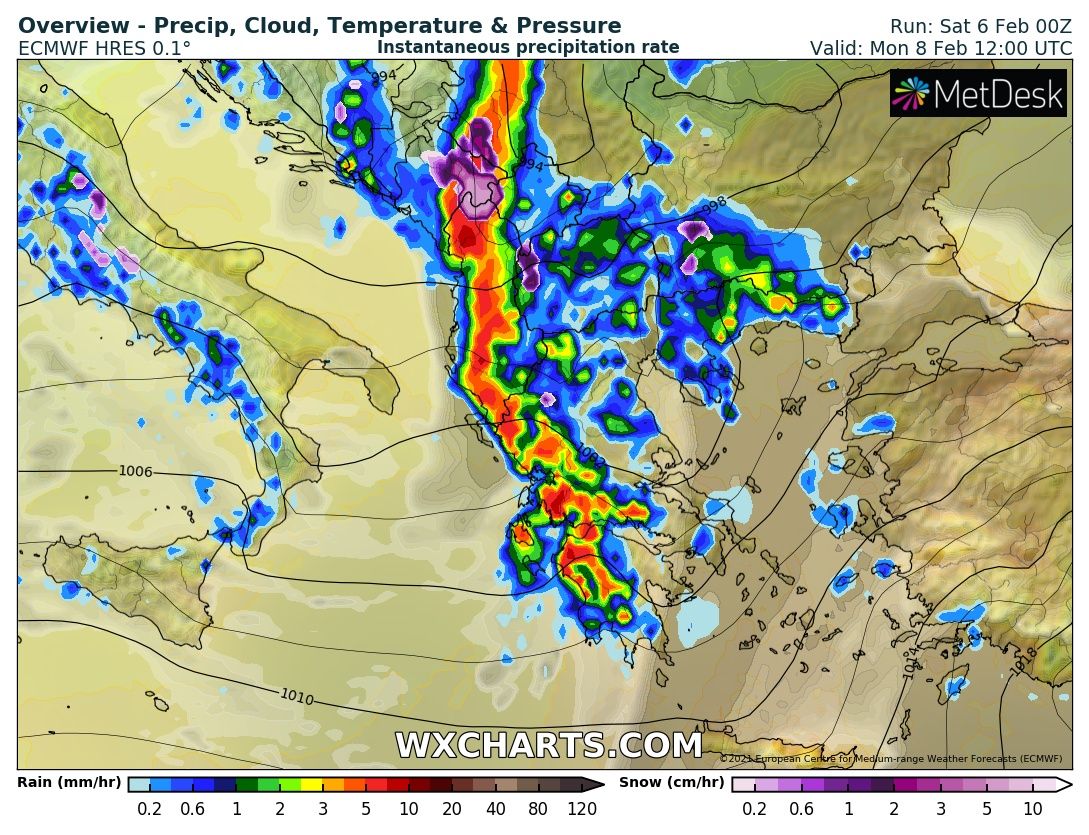 Ήδη λοιπόν από αύριο Δευτέρα 08/02, η καλοκαιρία θα λάβει τέλος αρχικά στην δυτική Ελλάδα, εξαιτίας μιας διαταραχής η οποία θα προκαλέσει μέσα στην ημέρα βροχές και καταιγίδες κατά τόπους ισχυρές σε Ιόνιο, Ήπειρο, δυτική Στερεά Ελλάδα και δυτική Πελοπόννησο.