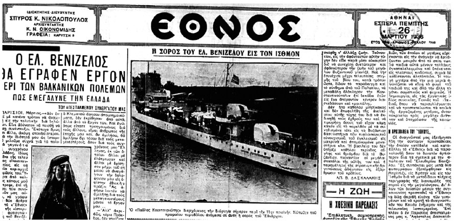 Η μεταφορά της σορού του Βενιζέλου από την Γαλλία στην Ελλάδα πήρε πάνω από μία εβδομάδα και μάλιστα, λόγω μεγάλου ενδιαφέροντος από τους πολίτες, έγινε και κινηματογραφική επιτυχία.