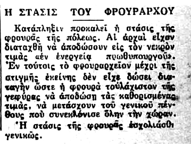 Πολλοί δε μάλιστα από του φιλοβενιζελικούς Κορινθίους μετέβησαν με πλοίο στην Κρήτη για να παραστούν στην κηδεία του.