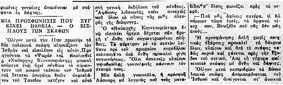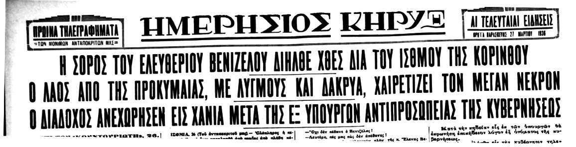 Πολλοί δε μάλιστα από του φιλοβενιζελικούς Κορινθίους μετέβησαν με πλοίο στην Κρήτη για να παραστούν στην κηδεία του.