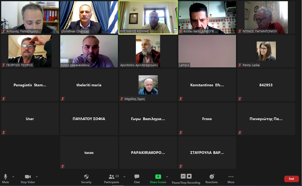Με μεγάλη συμμετοχή επιχειρηματιών έλαβε χώρα η διαδικτυακή εκδήλωση που διοργάνωσε το Επιμελητήριο Κορινθίας σε συνεργασία με την ΑΝΒΟΠΕ