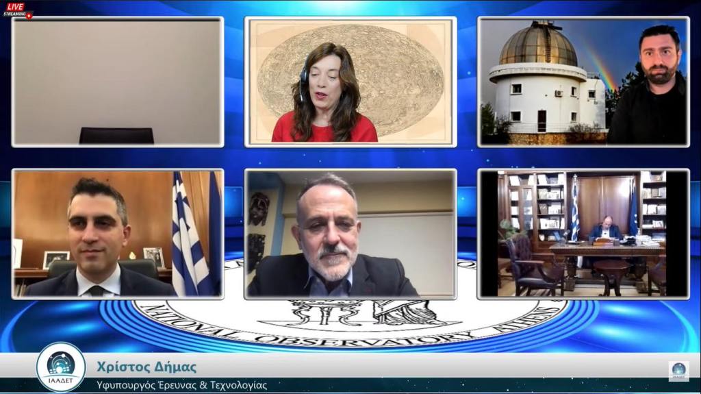 Ο υφυπουργός Ανάπτυξης τόνισε ότι η κυβέρνηση στηρίζει το Αστεροσκοπείο και σημείωσε ότι «η επιστημονική δουλειά που γίνεται έχει αναδειχθεί το τελευταίο διάστημα, αλλά οφείλουμε όλοι να την αναδείξουμε ακόμη περισσότερο. Γνωρίζω μάλιστα, τόνισε ο υφυπουργός, ότι στη μελέτη της Σελήνης γίνεται πραγματικά εξαιρετική δουλειά. Από κει και έπειτα συνέχισε ο κ. Δήμας, αυτό που θέλω να πω είναι συγχαρητήρια και μακάρι το επόμενο χρονικό διάστημα να έχουμε τη δυνατότητα να κάνουμε εκδηλώσεις δια ζώσης στο Κρυονέρι και επιστημονικού και πολιτιστικού χαρακτήρα και να μαθαίνουμε και εμείς και τα παιδιά μας αλλά και ευρύτερα όλη η κοινωνία τα σημαντικά επιστημονικά επιτεύγματα τόσο του Αστεροσκοπείου Κρυονερίου όσο και του Αστεροσκοπείου Αθηνών γενικότερα», κατέληξε.