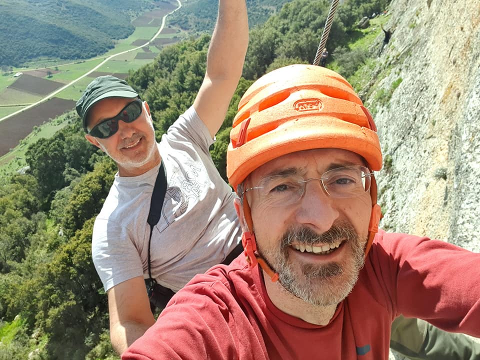 Ο Σπύρος Σταματόπουλος, άνετος στην αναρρίχηση, σταμάτησε και για μία selfie στη μέση της διαδρομής, μαζί με τον έμπειρο αναρριχητή και ορειβάτη Άρη Θεοδωρόπουλο.