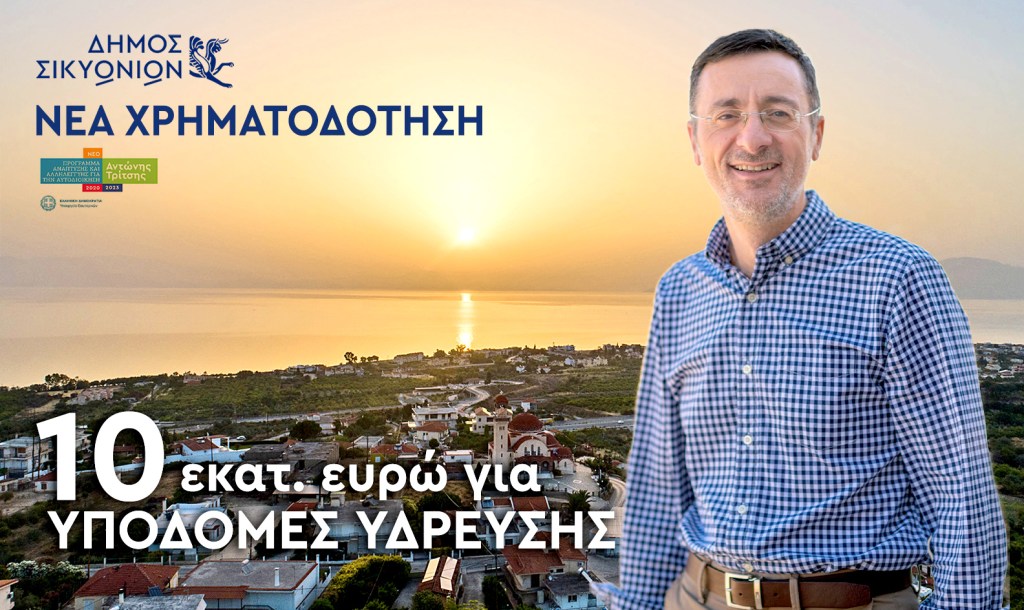 Μια νέα μεγάλη χρηματοδότηση εξασφάλισε ο δήμος Σικυωνίων, από το πρόγραμμα «Αντώνης Τρίτσης» αυτή τη φορά, ύψους 10 εκατομμυρίων ευρώ για υποδομές ύδρευσης.