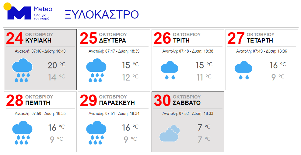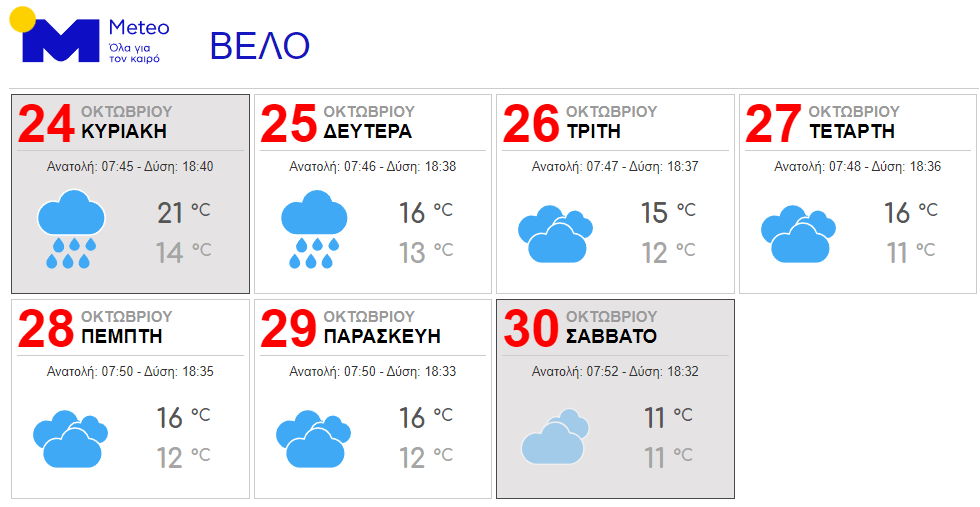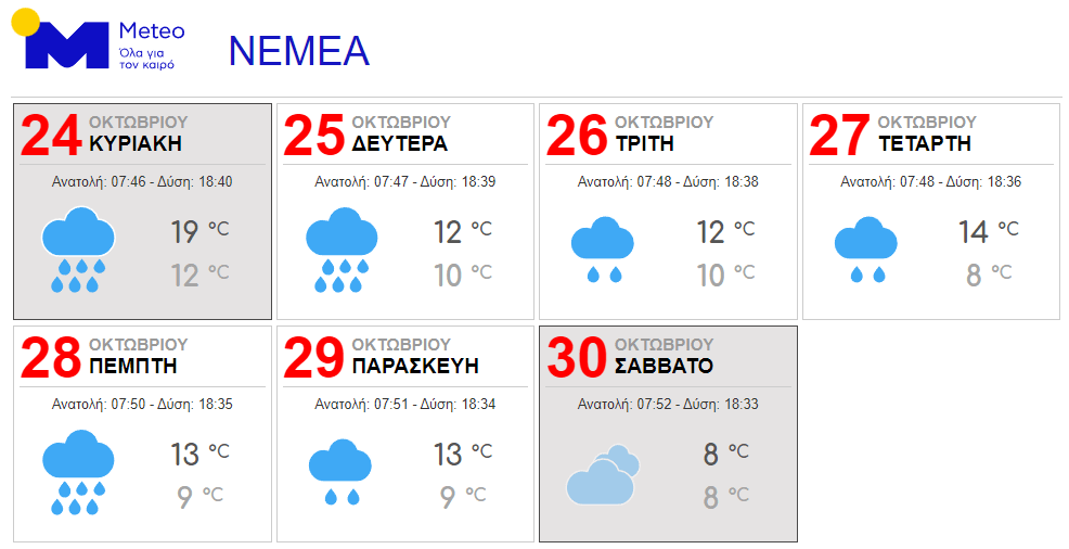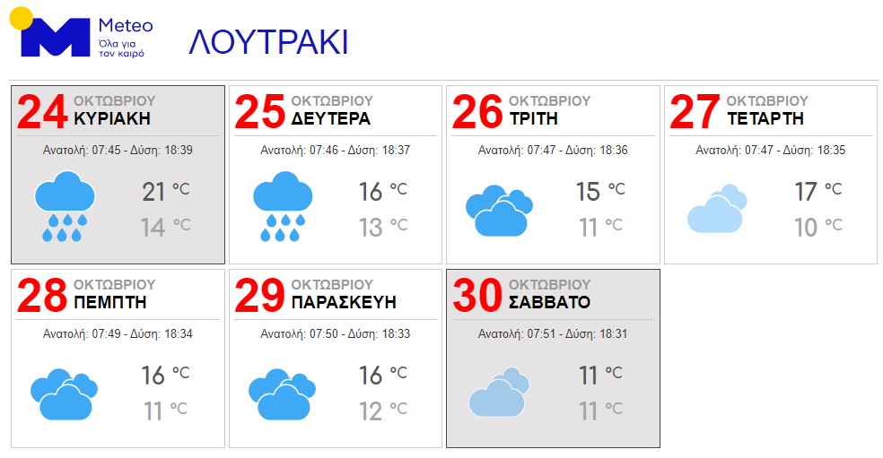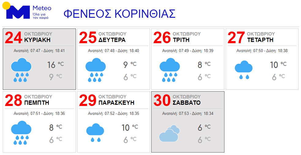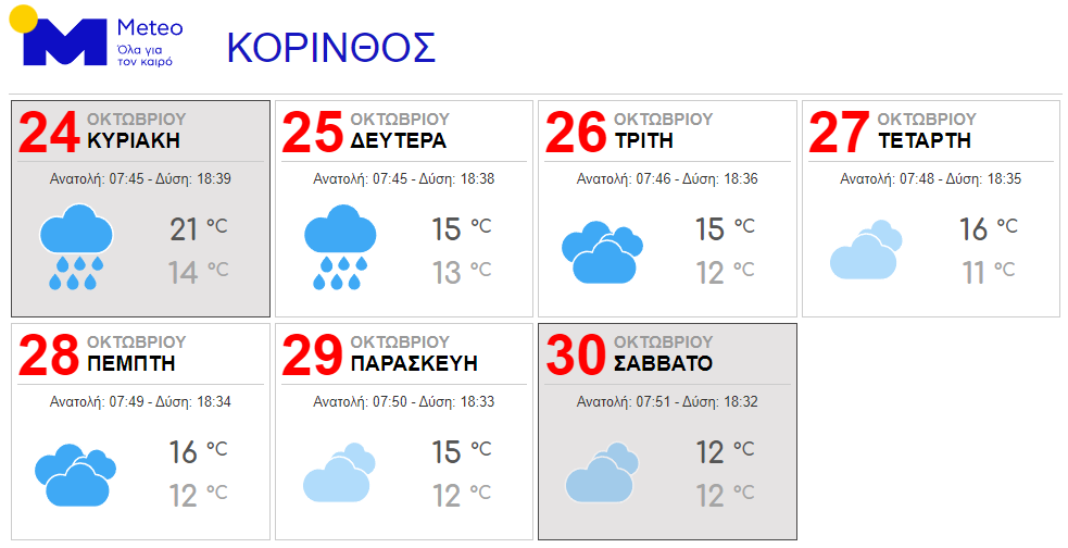 Αναλυτικά στοιχεία για την Κορινθία – Ποια είναι η πρόγνωση του καιρού για τη νέα εβδομάδα (25/10-29/10)