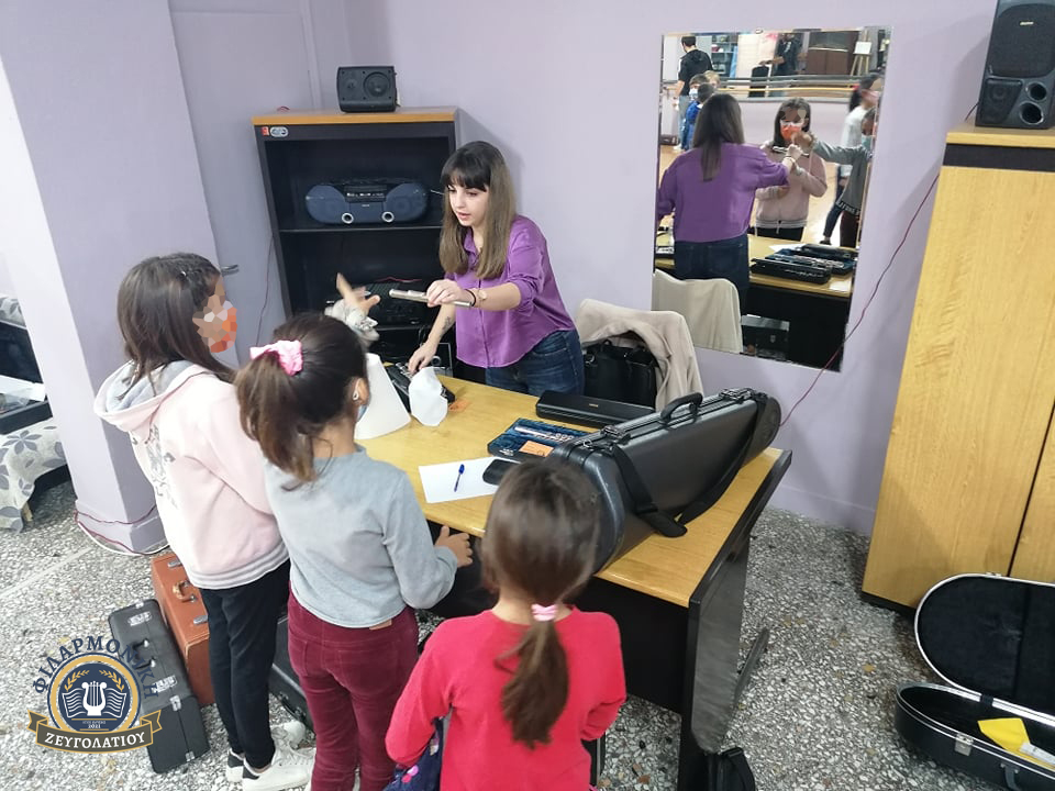 Τις προηγούμενες μέρες ο δάσκαλός μας, ο Πελοπίδας Μαυρόπουλος και οι συνεργάτες του δοκίμασαν με τα παιδιά τα μουσικά όργανα, το κάθε παιδί να βρει αυτό που του ταιριάζει, αυτό που στα χέρια του θα μεταμορφωθεί σε μια γλυκιά και πλούσια μελωδία.