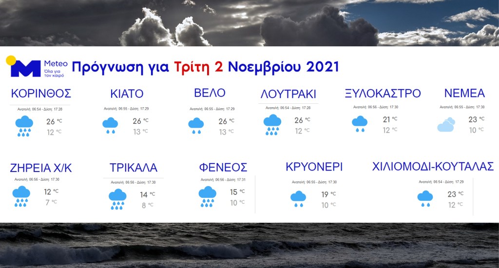 Η πρόγνωση του καιρού για σήμερα Τρίτη 2 Νοεμβρίου
