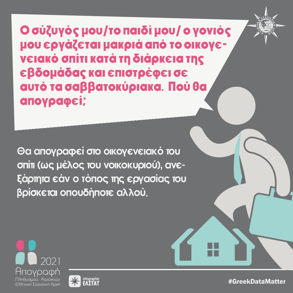 Παράλληλα, η Ελληνική Στατιστική Αρχή δημοσίευσε ένα οδηγό με χρήσιμες ερωτήσεις και απαντήσεις αναφορικά με την Απογραφή 2021. Συγκεκριμένα:
