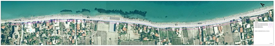 Οι γραμμές αιγιαλού και παραλίας, όπως έχουν καθοριστεί με ΦΕΚ του έτους 1982 απέχουν 10,50μ. μεταξύ τους και η γραμμή αιγιαλού είναι στο νότιο άκρο του κοινοτικού – δημοτικού – παραλιακού δρόμου αύρας και φυσικά η γραμμή παραλίας ακόμη 10,50μ. νοτιότερα και εντός των παρακείμενων ιδιοκτησιών που εφάπτονται της δημοτικής παραλιακής οδού.