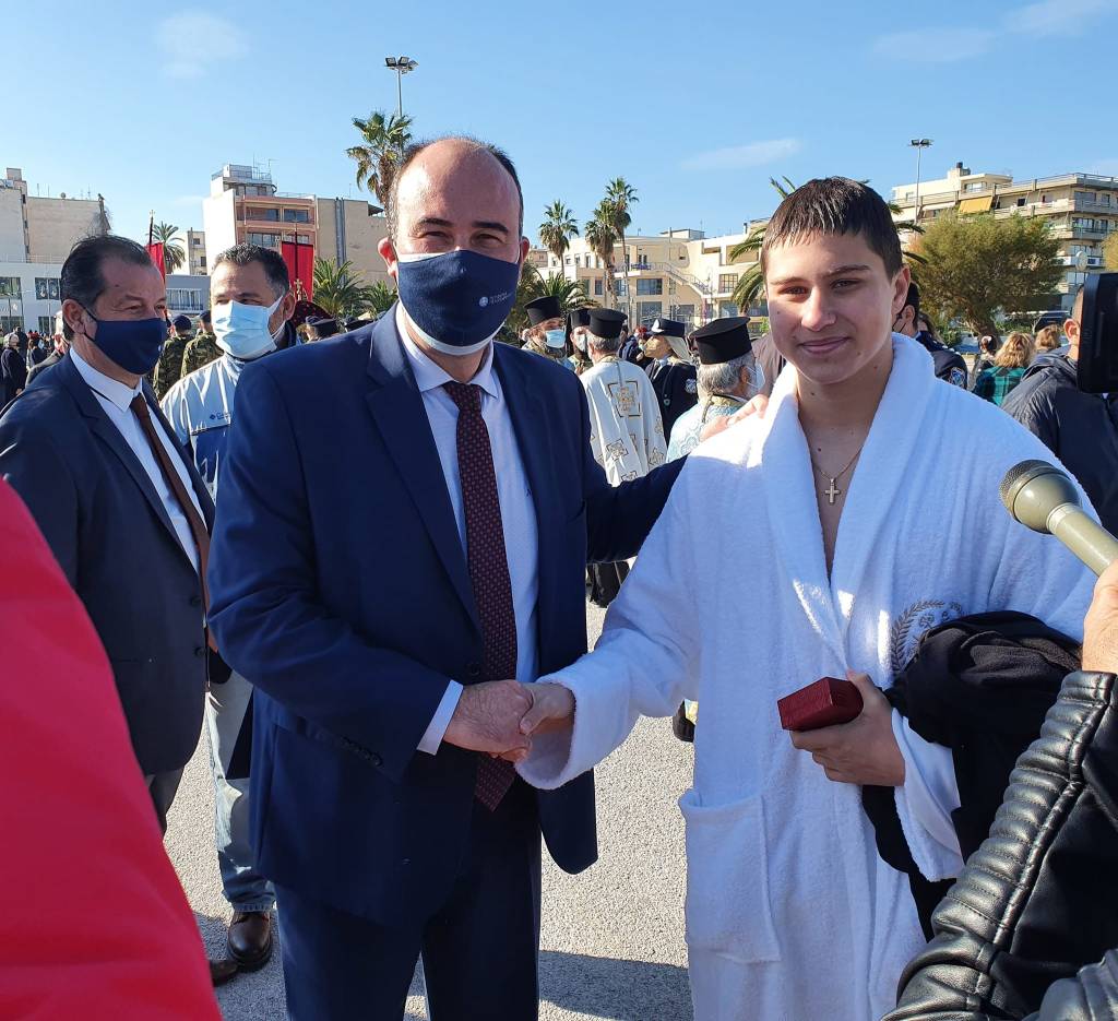 Στην Κόρινθο ο εορτασμός αγιασμού των Υδάτων τελέστηκε με τη δέουσα λαμπρότητα στο λιμάνι της πόλης, χοροστατούντος του Μητροπολίτη Κορίνθου κ.κ. Διονυσίου και παρόντων όλων των πολιτειακών και στρατιωτικών αρχών. Τον Σταυρό ανέσυρε από τη θάλασσα ο μαθητής του 4ου Λυκείου Κορίνθου, Άρης Δημάκης, ο οποίος επιβραβεύθηκε με έναν χρυσό σταυρό, δώρο από τη Μητρόπολη Κορίνθου.