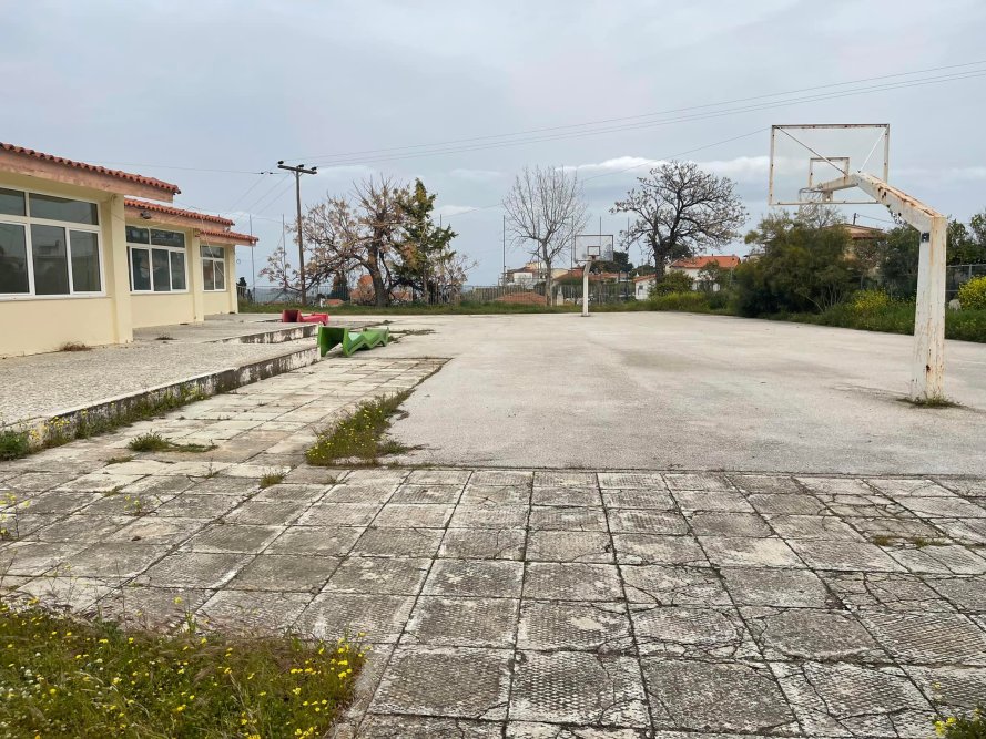 Στο Μελίσσι δεν υπάρχει ο παραμικρός αθλητικός χώρος, το σχολείο παρατημένο με τις μπασκέτες του διακοσμητικά στοιχεία και τον αύλειο χώρο να χορταριάζει…