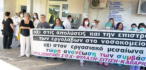 Να παραταθούν οι συμβάσεις των εργαζόμενων σε φύλαξη, σίτιση και καθαριότητα που λήγουν 30/06 και να παραμείνουν στη θέση τους, όπως και το λοιπό επικουρικό προσωπικό του Γ.Ν. Κορίνθου», καταλήγει.