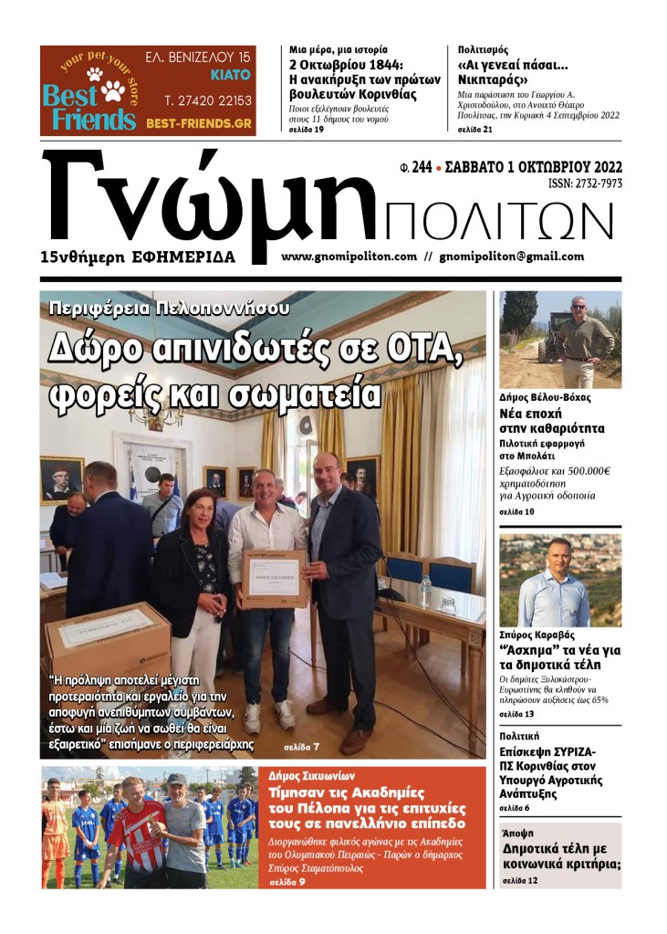 Tagged as: front page, ΑΝΝΙΒΑΣ ΠΑΠΑΚΥΡΙΑΚΟΣ, ΒΑΣΙΛΗΣ ΝΑΝΟΠΟΥΛΟΣ, ΓΙΩΡΓΟΣ ΨΥΧΟΓΙΟΣ, ΔΗΜΟΣ ΒΕΛΟΥ-ΒΟΧΑΣ, ΔΗΜΟΣ ΣΙΚΥΩΝΙΩΝ, ΠΕΡΙΦΕΡΕΙΑ ΠΕΛΟΠΟΝΝΗΣΟΥ, ΣΠΥΡΟΣ ΣΤΑΜΑΤΟΠΟΥΛΟΣ