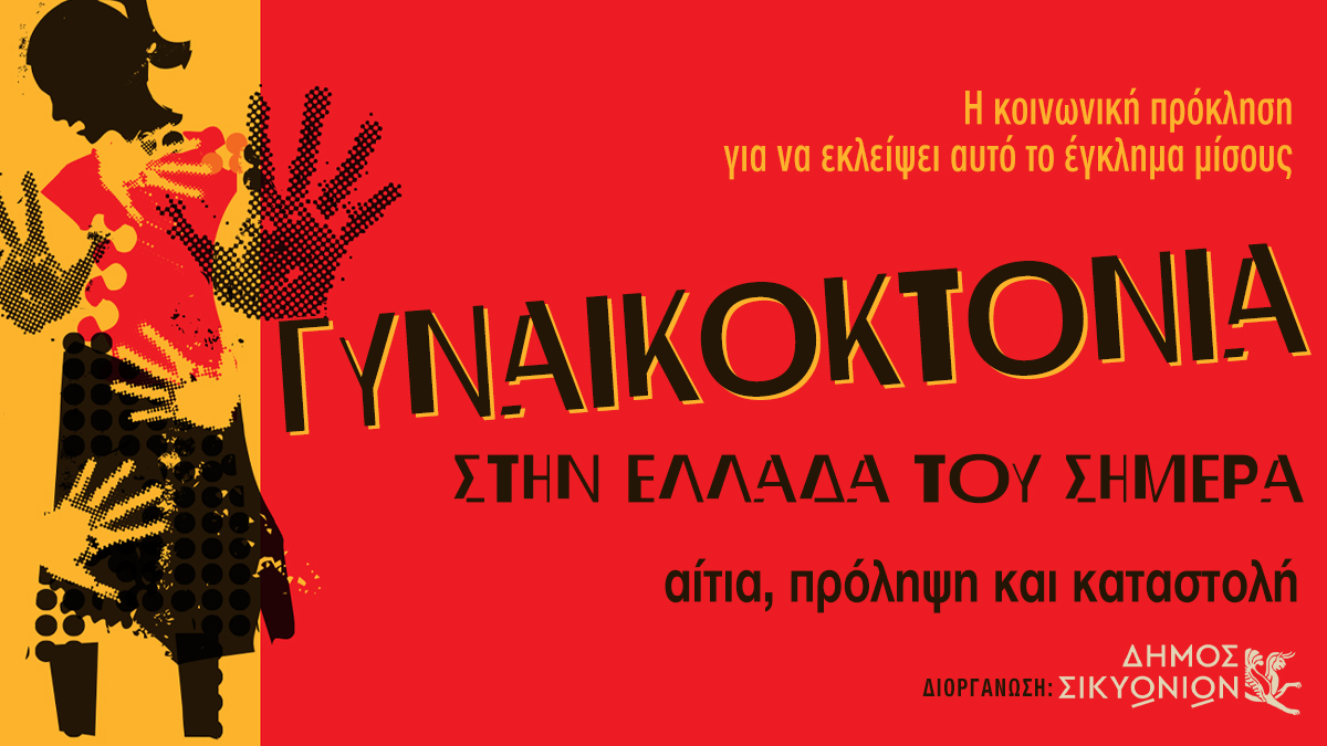 Μια σημαντική εκδήλωση για τις γυναικοκτονίες θα πραγματοποιηθεί στο Δημοτικό Θέατρο Κιάτου, το Σάββατο 15 Οκτωβρίου 2022, ώρα 7:00 το απόγευμα. Πρόκειται για μία ημερίδα/συζήτηση που διοργανώνει ο δήμος Σικυωνίων με θέμα: «Γυναικοκτονία στην Ελλάδα του σήμερα. Αίτια, πρόληψη και καταστολή».
