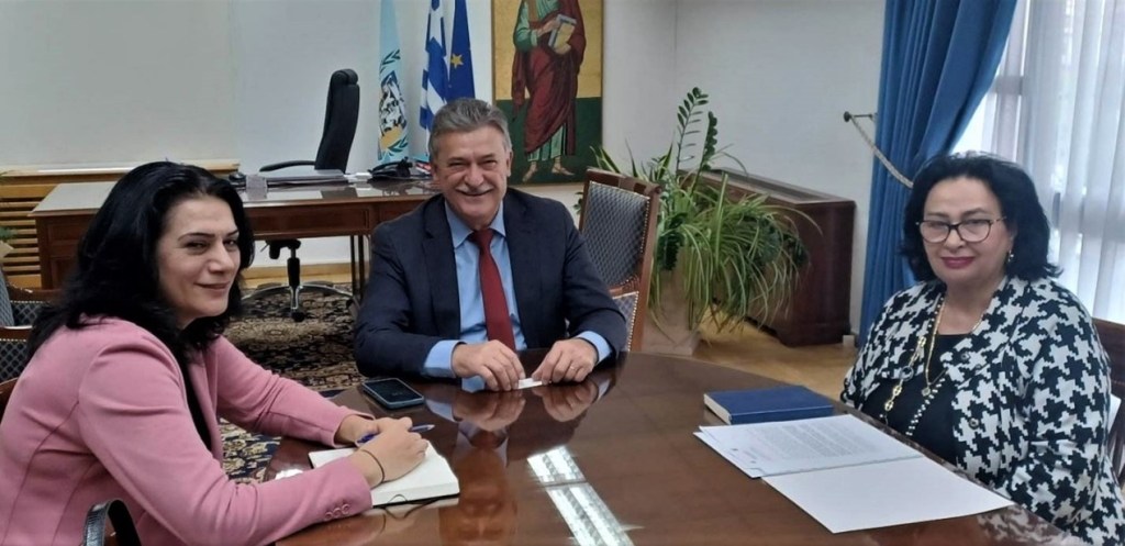 Ιδιαίτερης συμβολικής σημασίας αλλά και ουσίας ήταν η συνάντηση που είχε σήμερα ο Δήμαρχος Κορινθίων Βασίλης Νανόπουλος με την Αναπληρώτρια Πρέσβη της Δημοκρατίας της Αρμενίας στην Ελλάδα κ.Hasmik Dashtouan και την συνεργάτιδα της, σύμβουλο της πρεσβείας της Αρμενίας κ. Armine Ajeksanyan στο γραφείο του στο δημαρχείο Κορίνθου.