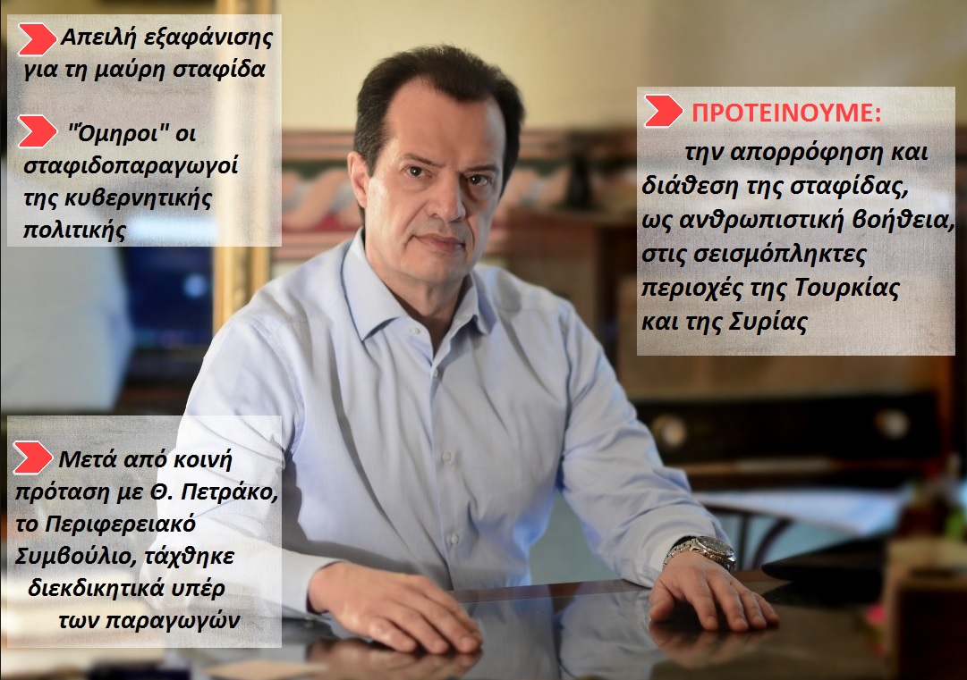 – Πρότασή μας να διατεθούν οι υπολειπόμενες ποσότητες σταφίδας, στο πλαίσιο της ανθρωπιστικής βοήθειας, σε Τουρκία – Συρία